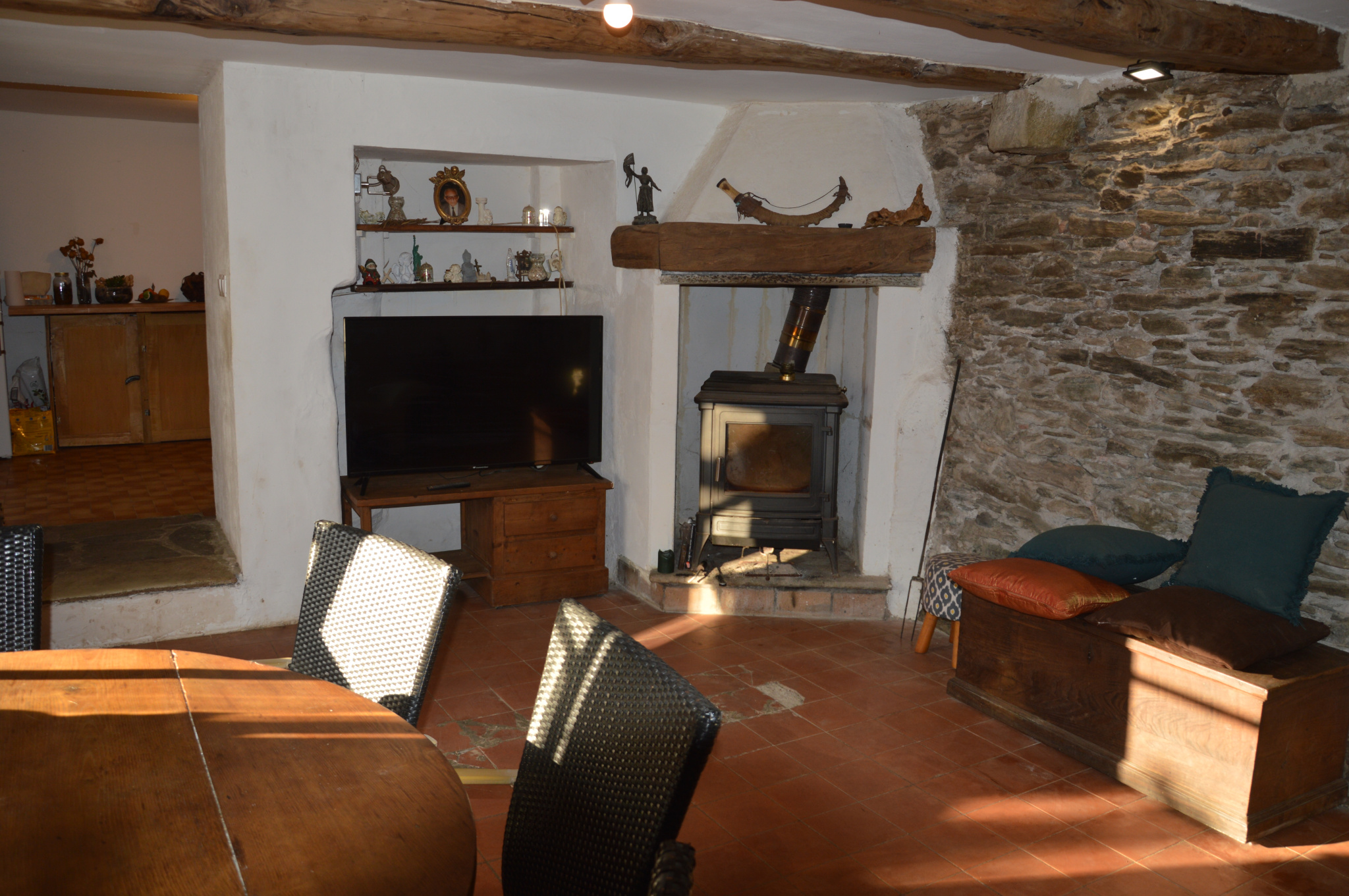 Un sublime salon avec pierre apparente et insert